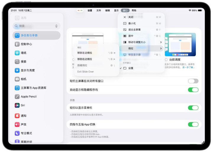 好消息是,现在更新 iPadOS 26.1 Beta 2 之后,侧拉功能又回来了。